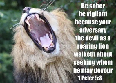 "Be sober, be vigilant; because your adversary the devil, as a roaring lion, walketh about, seeking whom he may devour." (1 Peter 5:8 KJV)