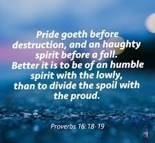 “Pride goes before destruction, a haughty spirit before a fall.” (Proverbs 16:18, NIV)