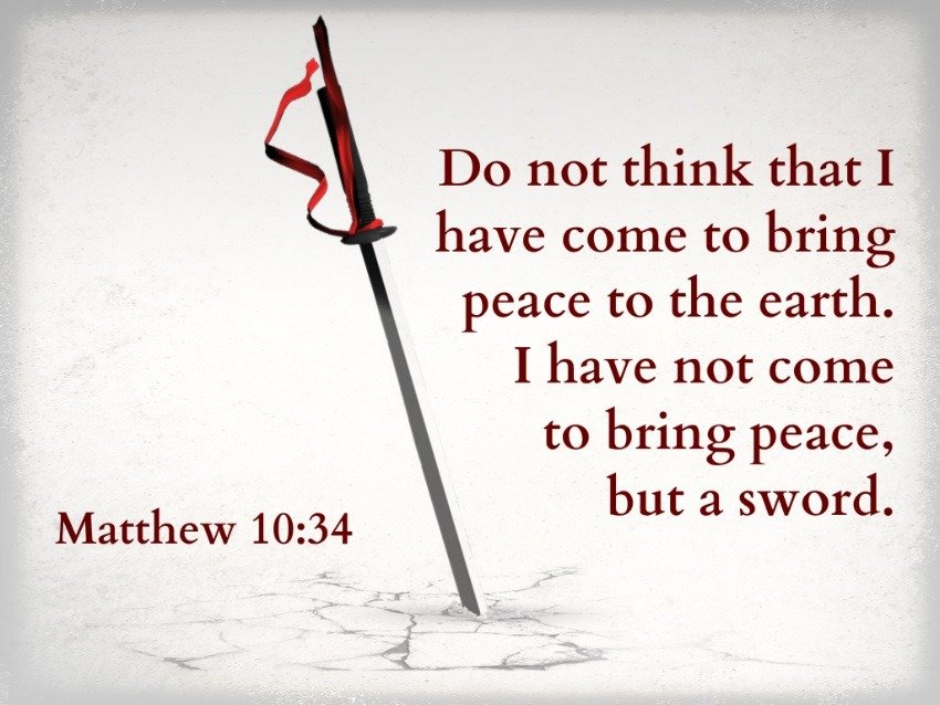 “Do not think that I came to bring peace on earth. I did not come to bring peace but a sword.” —Matthew 10:34
