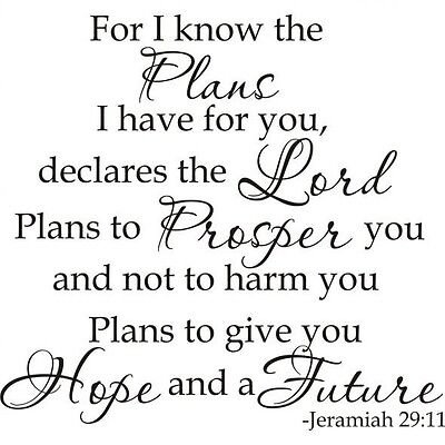 “For I know the plans I have for you,” declares the Lord, “plans to prosper you and not to harm you, plans to give you hope and a future.”