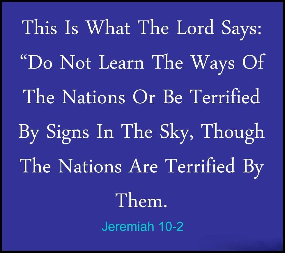Key Scripture: Jeremiah 10:2-5 (NIV): "This is what the Lord says: 'Do not learn the ways of the nations or be terrified by signs in the heavens, though the nations are terrified by them. For the practices of the peoples are worthless; they cut a tree out of the forest, and a craftsman shapes it with his chisel. They adorn it with silver and gold; they fasten it with hammer and nails so it will not totter. Like a scarecrow in a cucumber field, their idols cannot speak; they must be carried because they cannot walk. Do not fear them; they can do no harm nor can they do any good.'"