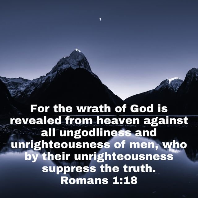 "For the wrath of God is revealed from heaven against all ungodliness and unrighteousness of men, who by their unrighteousness suppress the truth." (Romans 1:18, ESV)
