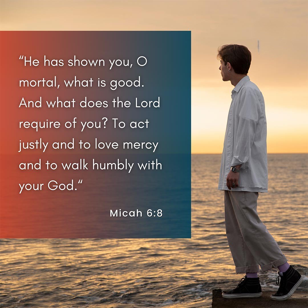 Micah 6:8 – "He has shown you, O mortal, what is good. And what does the Lord require of you? To act justly and to love mercy and to walk humbly with your God."