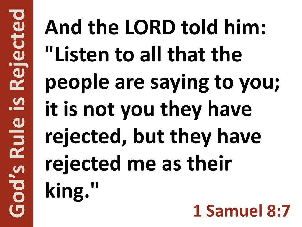Key Scripture: 1 Samuel 8:7 – "And the Lord said to Samuel, 'Listen to all that the people are saying to you; it is not you they have rejected, but they have rejected me as their king.'"