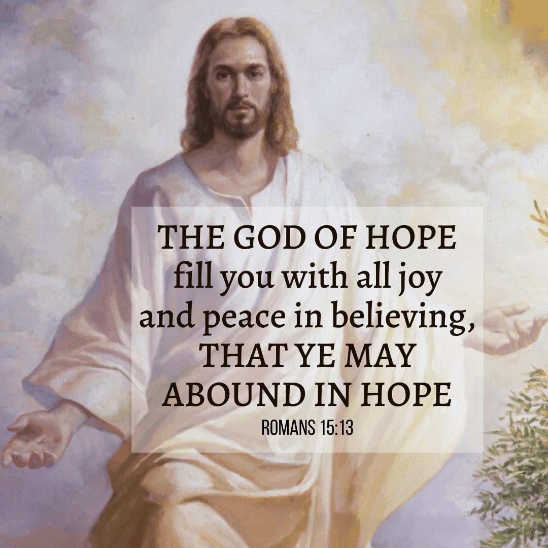 Romans 15:13 - "Now the God of hope fill you with all joy and peace in believing, that ye may abound in hope, through the power of the Holy Ghost."