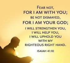 Isaiah 41:10 - "Fear thou not; for I am with thee: be not dismayed; for I am thy God: I will strengthen thee; yea, I will help thee; yea, I will uphold thee with the right hand of my righteousness."