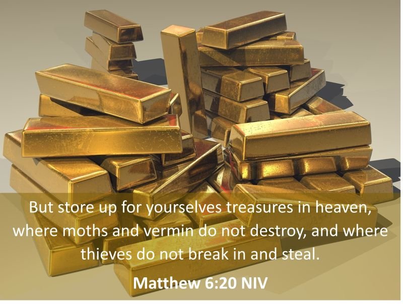 Matthew 6:19-20 - "Lay not up for yourselves treasures upon earth, where moth and rust doth corrupt, and where thieves break through and steal: But lay up for yourselves treasures in heaven."