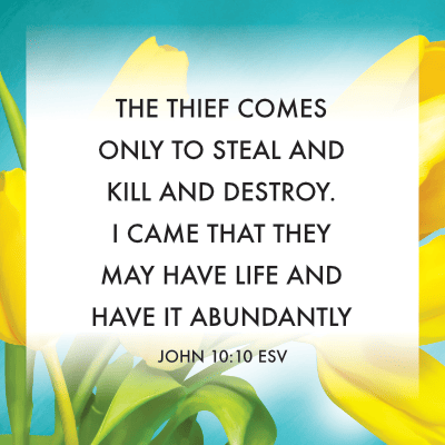 "The thief comes only to steal and kill and destroy; I have come that they may have life, and have it to the full." (John 10:10, NIV)
