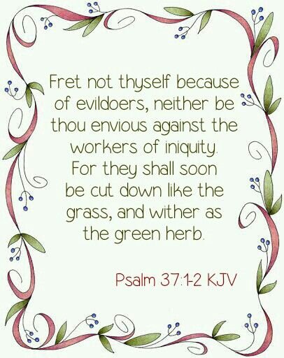 "Fret not thyself because of evildoers, neither be thou envious against the workers of iniquity." – Psalm 37:1