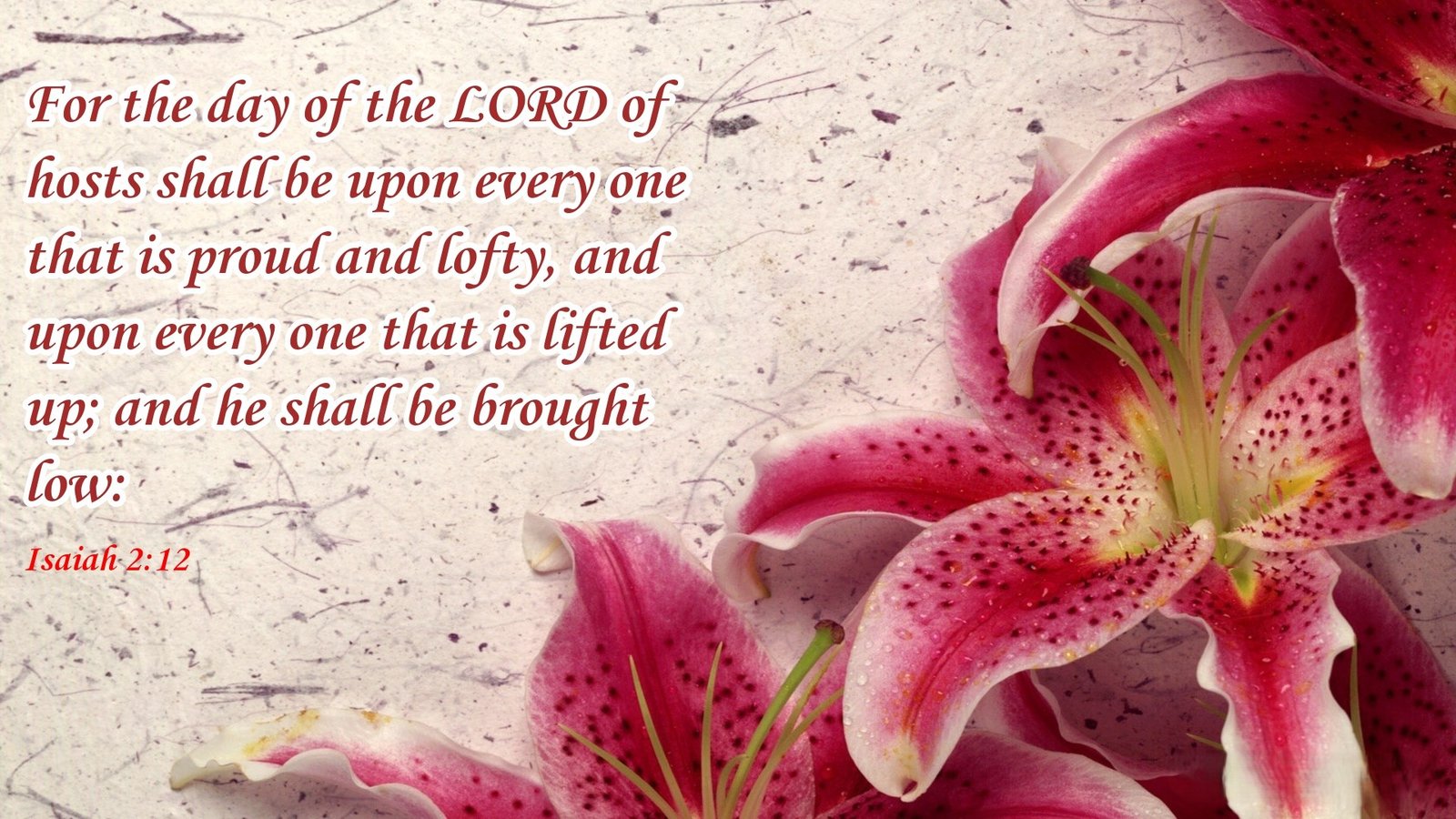 "For the day of the Lord of hosts shall be upon every one that is proud and lofty, and upon every one that is lifted up; and he shall be brought low." – Isaiah 2:12