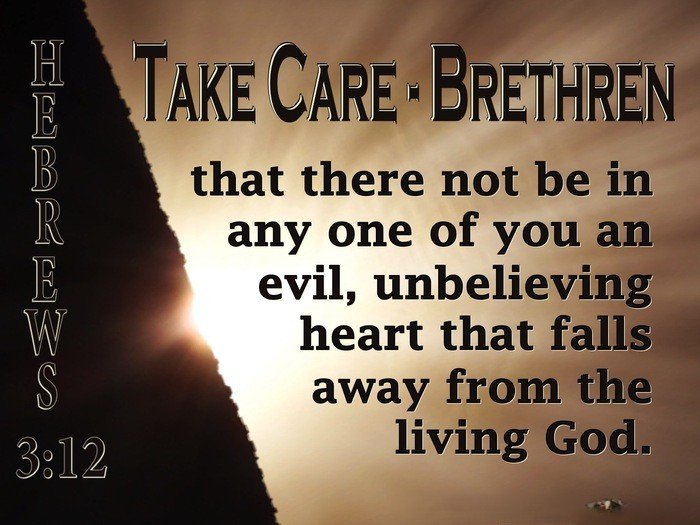 "Take heed, brethren, lest there be in any of you an evil heart of unbelief, in departing from the living God." – Hebrews 3:12