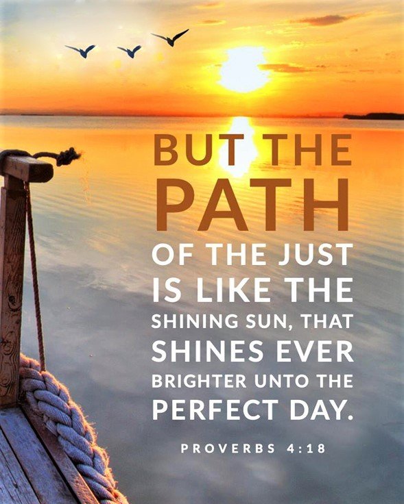 "But the path of the just is as the shining light, that shineth more and more unto the perfect day." — Proverbs 4:18