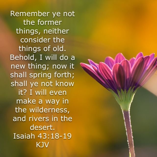 Key Scripture: "Remember ye not the former things, neither consider the things of old. Behold, I will do a new thing; now it shall spring forth; shall ye not know it? I will even make a way in the wilderness, and rivers in the desert." — Isaiah 43:18–19 (KJV)