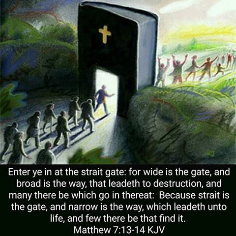 “Enter ye in at the strait gate: for wide is the gate, and broad is the way, that leadeth to destruction… because strait is the gate, and narrow is the way, which leadeth unto life, and few there be that find it.”
