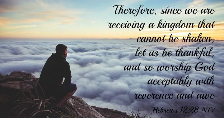 “Therefore, since we are receiving a kingdom that cannot be shaken, let us be thankful, and so worship God acceptably with reverence and awe.” (Hebrews 12:28, ESV)
