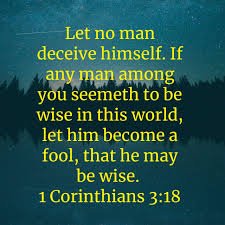 “Do not deceive yourselves. If any of you think you are wise by the standards of this age, you should become ‘fools’ so that you may become wise.” (1 Corinthians 3:18)