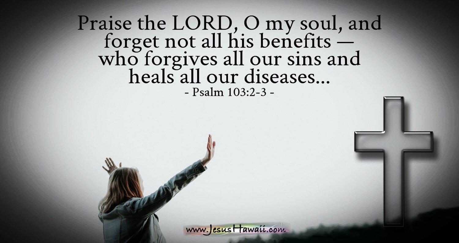"Praise the Lord, my soul, and forget not all his benefits—who forgives all your sins and heals all your diseases." – Psalm 103:2-3
