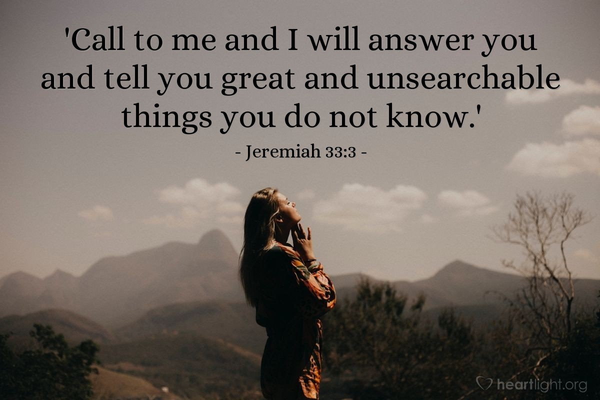 “Call to me and I will answer you and tell you great and unsearchable things you do not know.” – Jeremiah 33:3