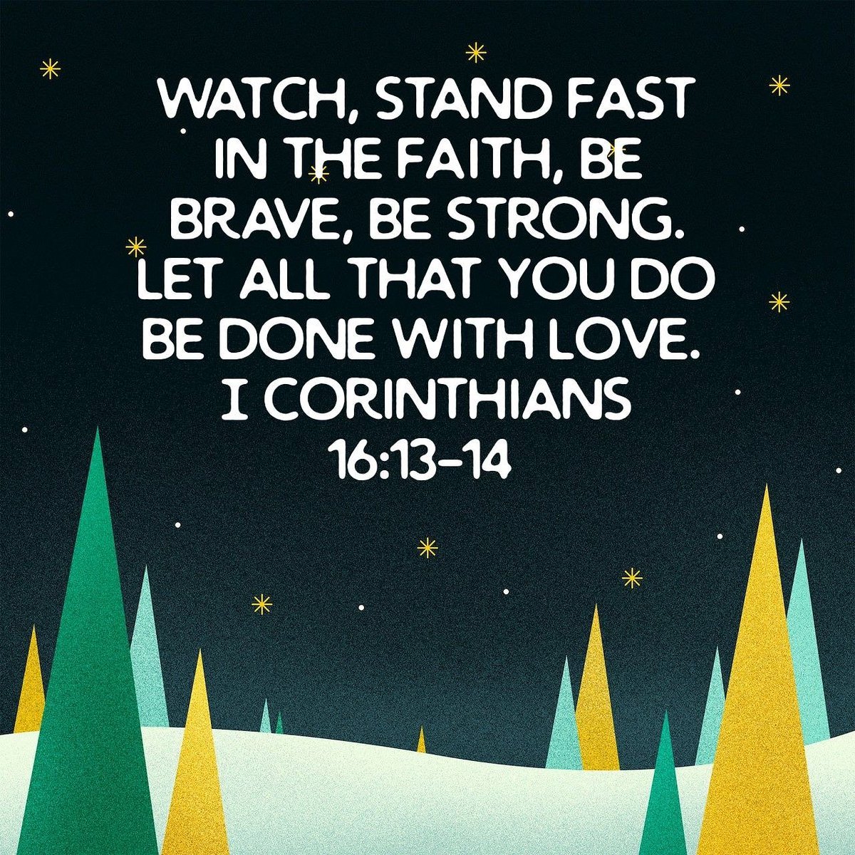 "Watch, stand fast in the faith, be brave, be strong. Let all that you do be done with love." (1 Corinthians 16:1314, NKJV)