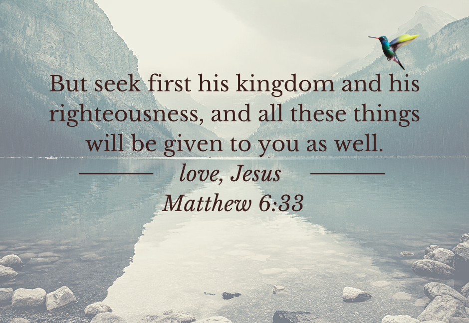 "But seek first his kingdom and his righteousness, and all these things will be given to you as well."