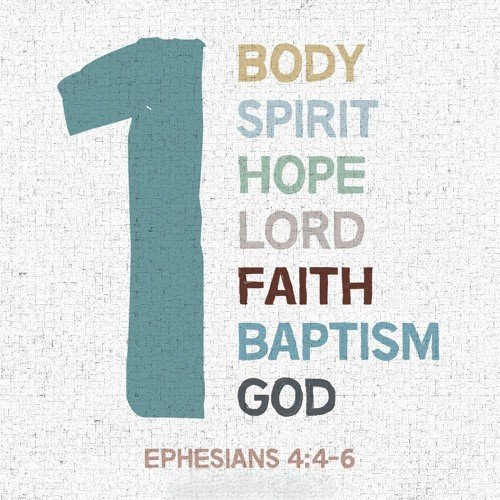 "There is one body and one Spirit, just as you were called to one hope when you were called; one Lord, one faith, one baptism; one God and Father of all, who is over all and through all and in all." (Ephesians 4:4-6, NIV).