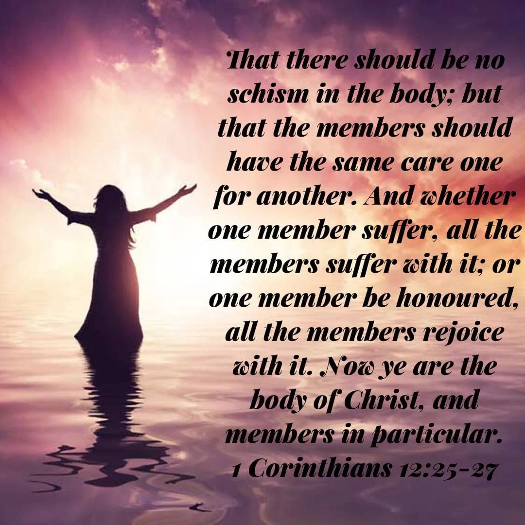"Just as a body, though one, has many parts, but all its many parts form one body, so it is with Christ." (1 Corinthians 12:12, NIV).