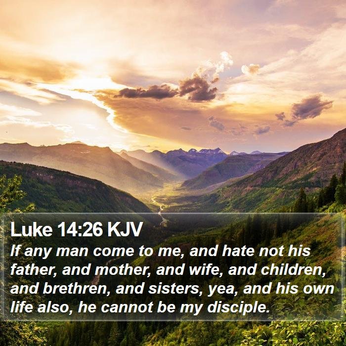 "If anyone comes to Me and does not hate his own father and mother and wife and children and brothers and sisters, yes, and even his own life, he cannot be My disciple." (Luke 14:26)