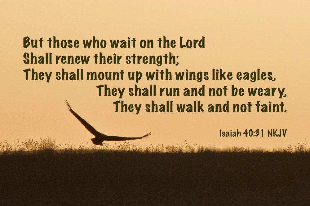 - "But those who wait on the Lord shall renew their strength; they shall mount up with wings like eagles, they shall run and not be weary, they shall walk and not faint." – Isaiah 40:31