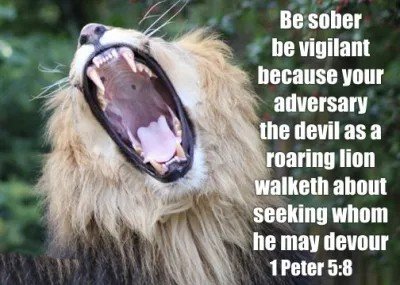 “Be sober, be vigilant; because your adversary the devil, as a roaring lion, walketh about, seeking whom he may devour.” (1 Peter 5:8)