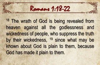 Romans 1:18 “The wrath of God is being revealed from heaven against all the godlessness and wickedness of people, who suppress the truth by their wickedness.”