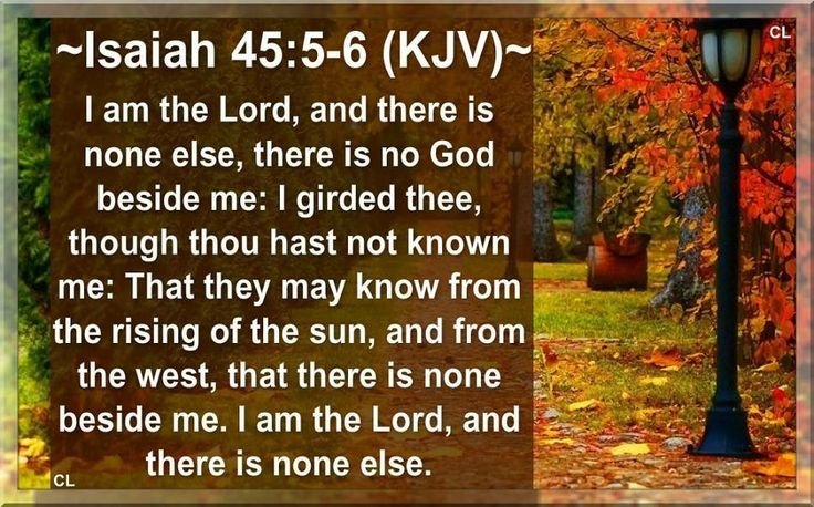 "I am the Lord, and there is none else, there is no God beside me: I girded thee, though thou hast not known me: That they may know from the rising of the sun, and from the west, that there is none beside me. I am the Lord, and there is none else."
