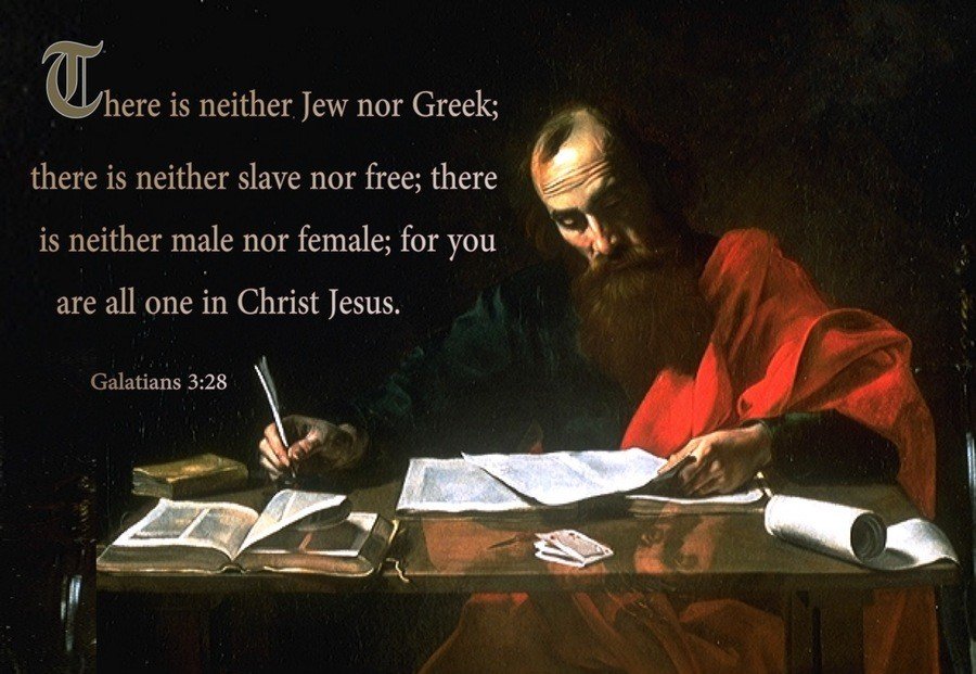 Galatians 3:28 - "There is neither Jew nor Greek, slave nor free, male nor female, for you are all one in Christ Jesus."