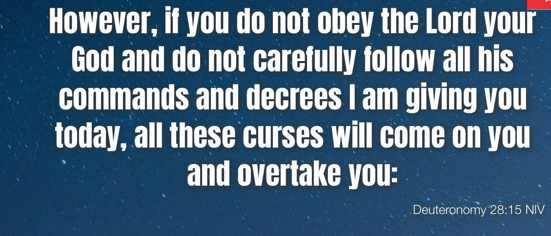 "But it shall come to pass, if thou wilt not hearken unto the voice of the LORD thy God, to observe to do all his commandments and his statutes which I command thee this day; that all these curses shall come upon thee, and overtake thee."