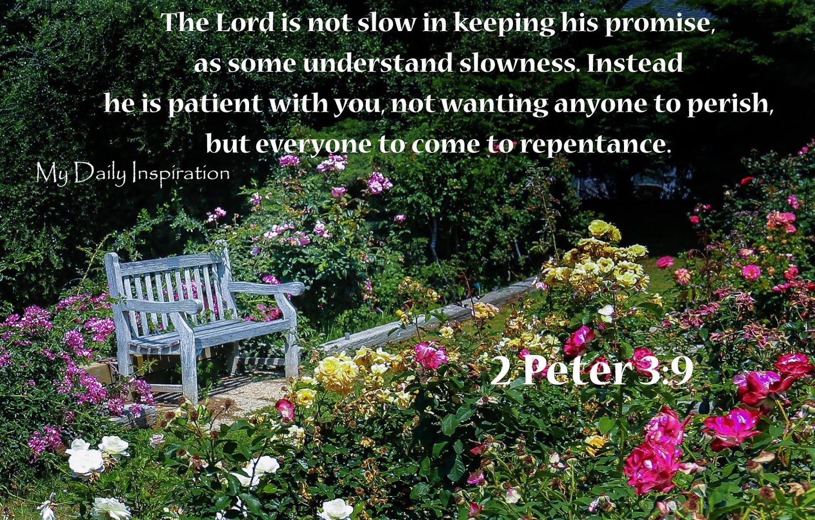 “The Lord is not slow in keeping His promise, as some understand slowness. Instead, He is patient with you, not wanting anyone to perish, but everyone to come to repentance.” — 2 Peter 3:9 (NIV)