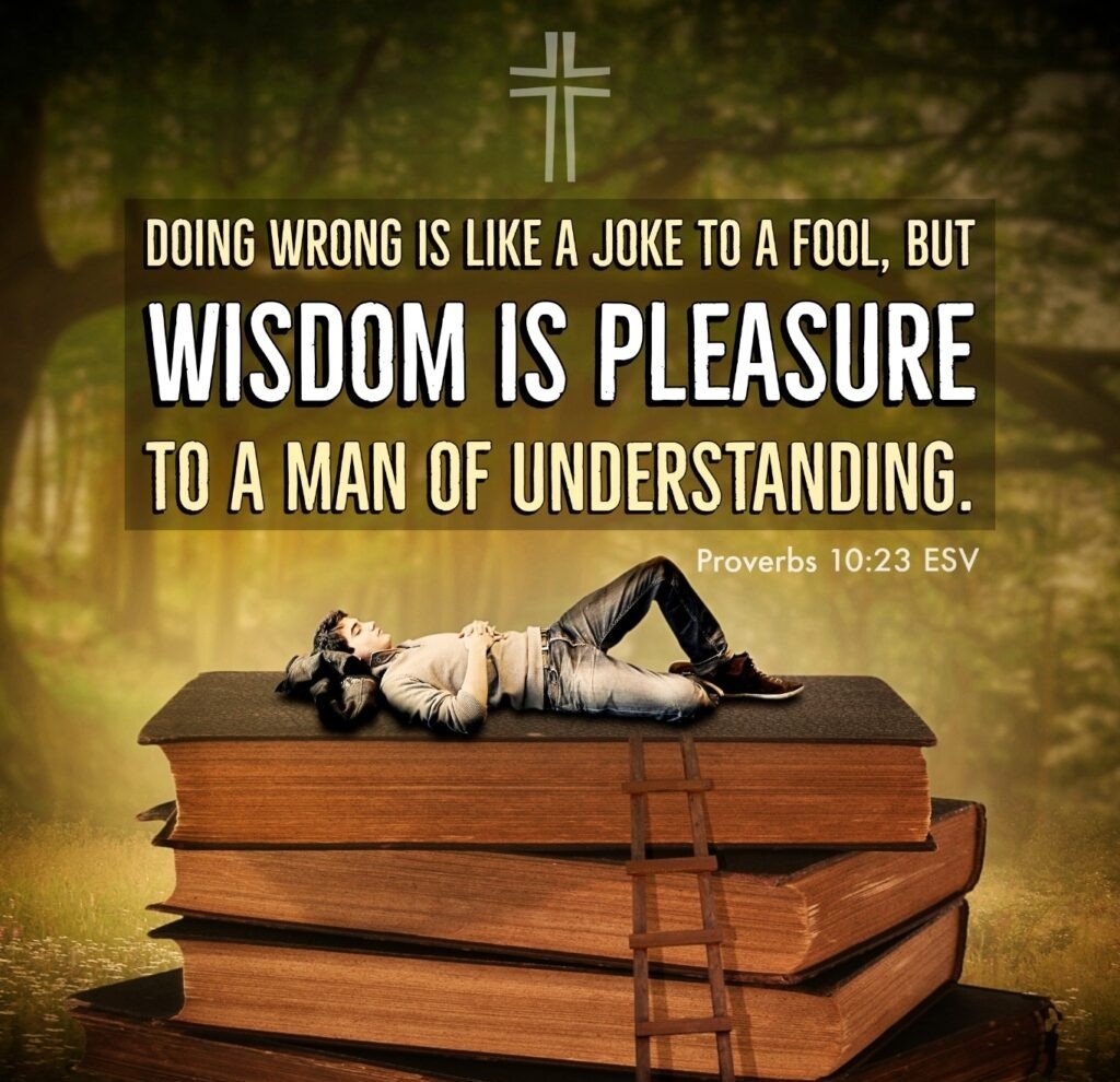 "A fool finds pleasure in wicked schemes, but a person of understanding delights in wisdom." - Proverbs 10:23