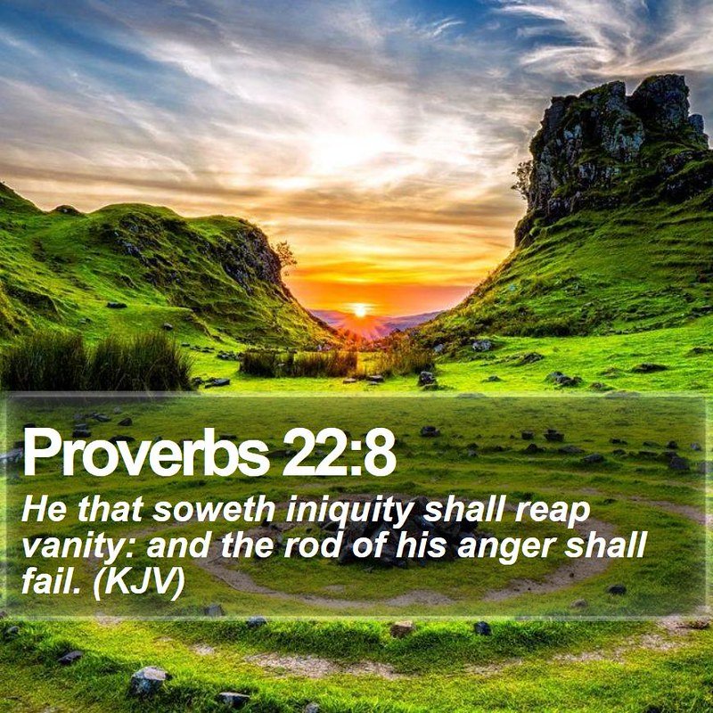 “He who sows iniquity reaps trouble, and the rod of his fury will be destroyed.” – Proverbs 22:8