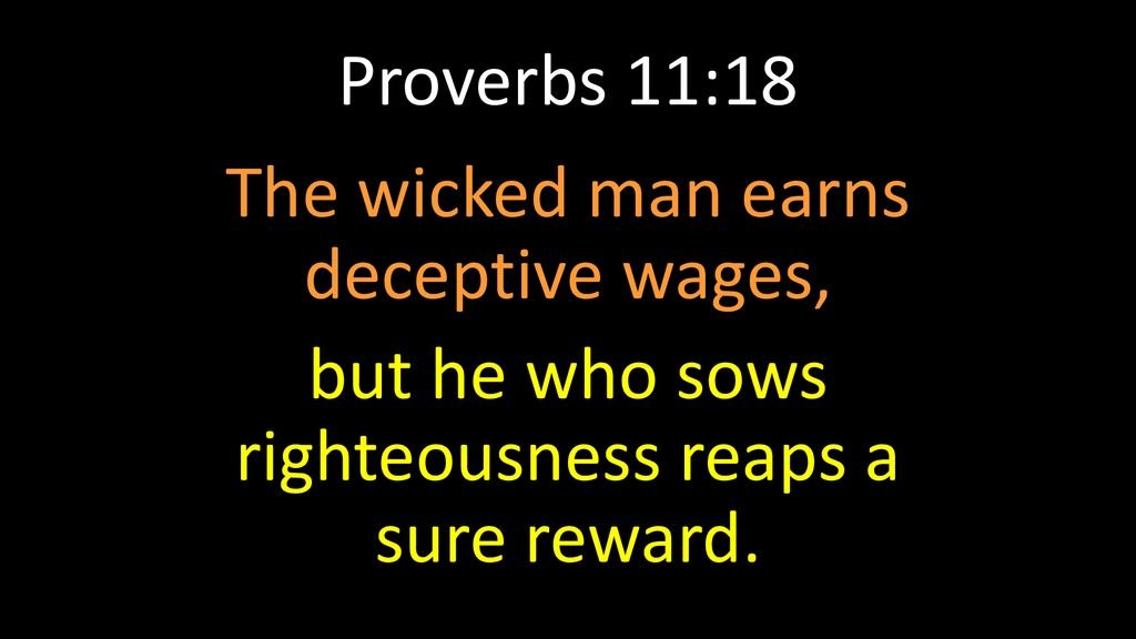 Proverbs 11:18 “The wicked worketh a deceitful work: but to him that soweth righteousness shall be a sure reward.”