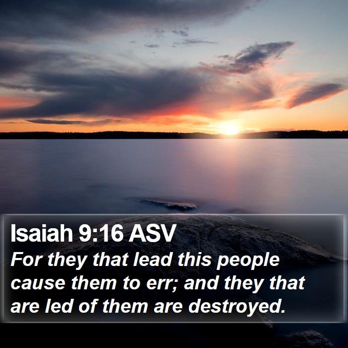 "For the leaders of this people cause them to err, and those who are led by them are destroyed." (Isaiah 9:16).