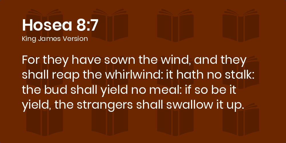 "They have sown the wind, and they shall reap the whirlwind." (Hosea 8:7).