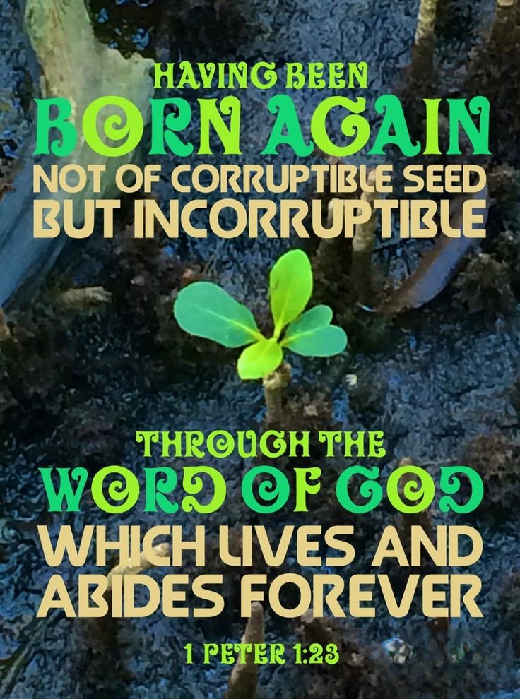 “Being born again, not of corruptible seed, but of incorruptible, by the word of God, which liveth and abideth for ever.” — 1 Peter 1:23