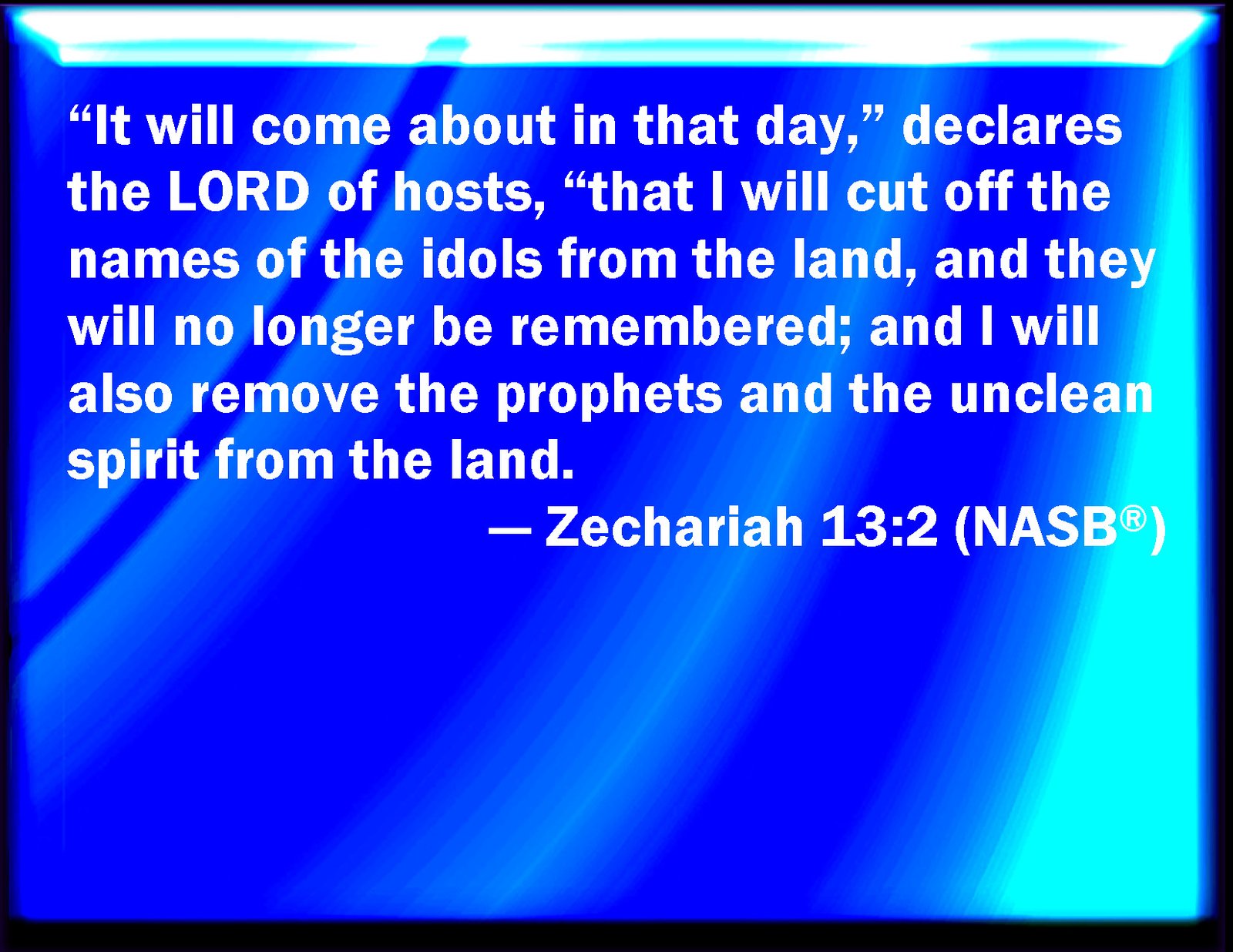 “And it shall come to pass in that day, saith the LORD of hosts, that I will cut off the names of the idols out of the land, and they shall no more be remembered: and also I will cause the prophets and the unclean spirit to pass out of the land.”